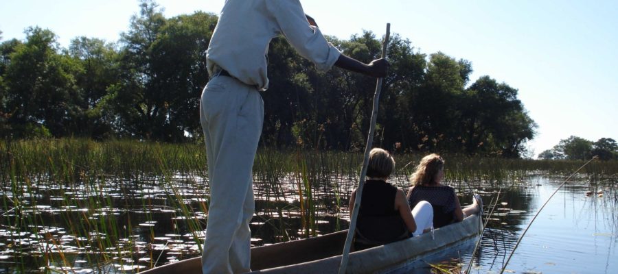 The day is at leisure to enjoy the game viewing activities on offer. The game viewing opportunities around Sanctuary Chief’s Camp are awe-inspiring. Elephant, wild dog, cheetah and leopard can all be spotted close to camp and the area also boasts over 500 species of bird. Mokoros, local dugout canoes, are ideal for getting close to the bush in the company of a highly trained local guide. Each June the whole area around the camp floods and turns the Okavango Delta into a labyrinth of lily-filled lagoons and streams where hippos fight for bathing rights and crocodiles wait for unwary antelope to linger too long over a drink. Poling through the byways created by the floodwaters is a magical experience that allows guests to get very close to the biggest of game and to see the world from a totally different angle – looking up onto the banks rather than down onto them.